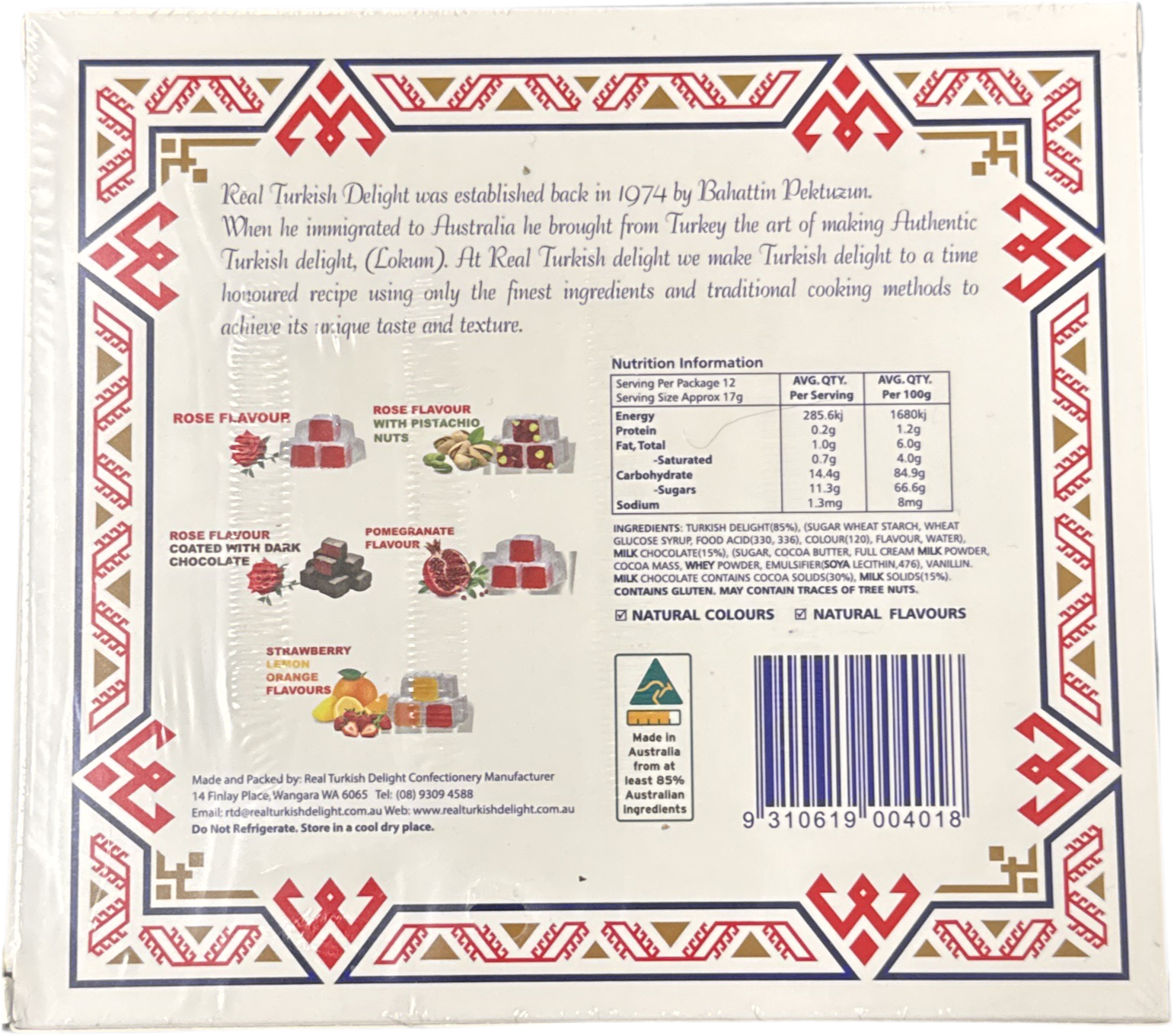 Turkish Delight Rose Flavour Coated with Chocolate 200g